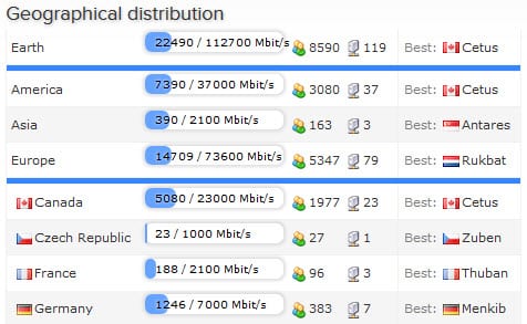 如上图所示,服务器分布在 25 个国家/地区。